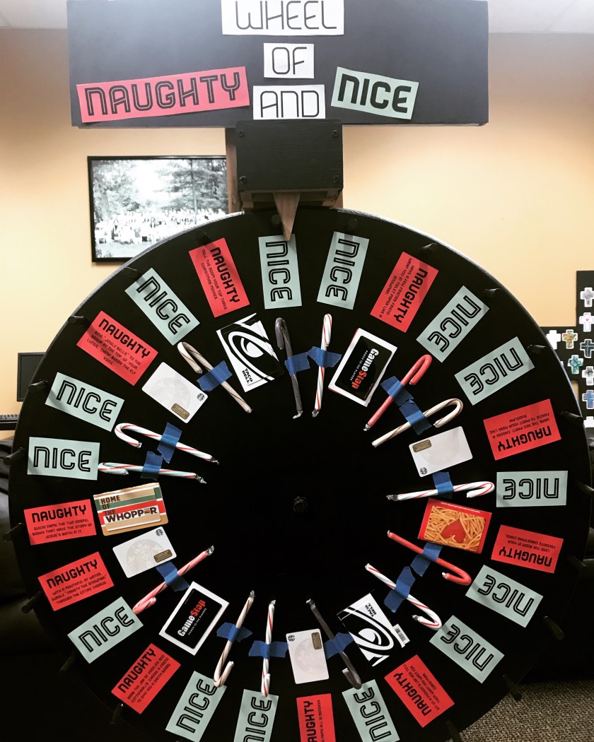 The Main Idea: The Wheel of Naughty & Nice is a game that you can use with students to determine if they’ve been naughty or nice this year! If they spin “nice,” they get a candy cane. If they spin “naughty,” they have a chance to make up for their behavior and get an even better prize: a gift card. We used gift cards for Starbucks, Dairy Queen, Taco Bell, iTuness, & Steak N Shake.